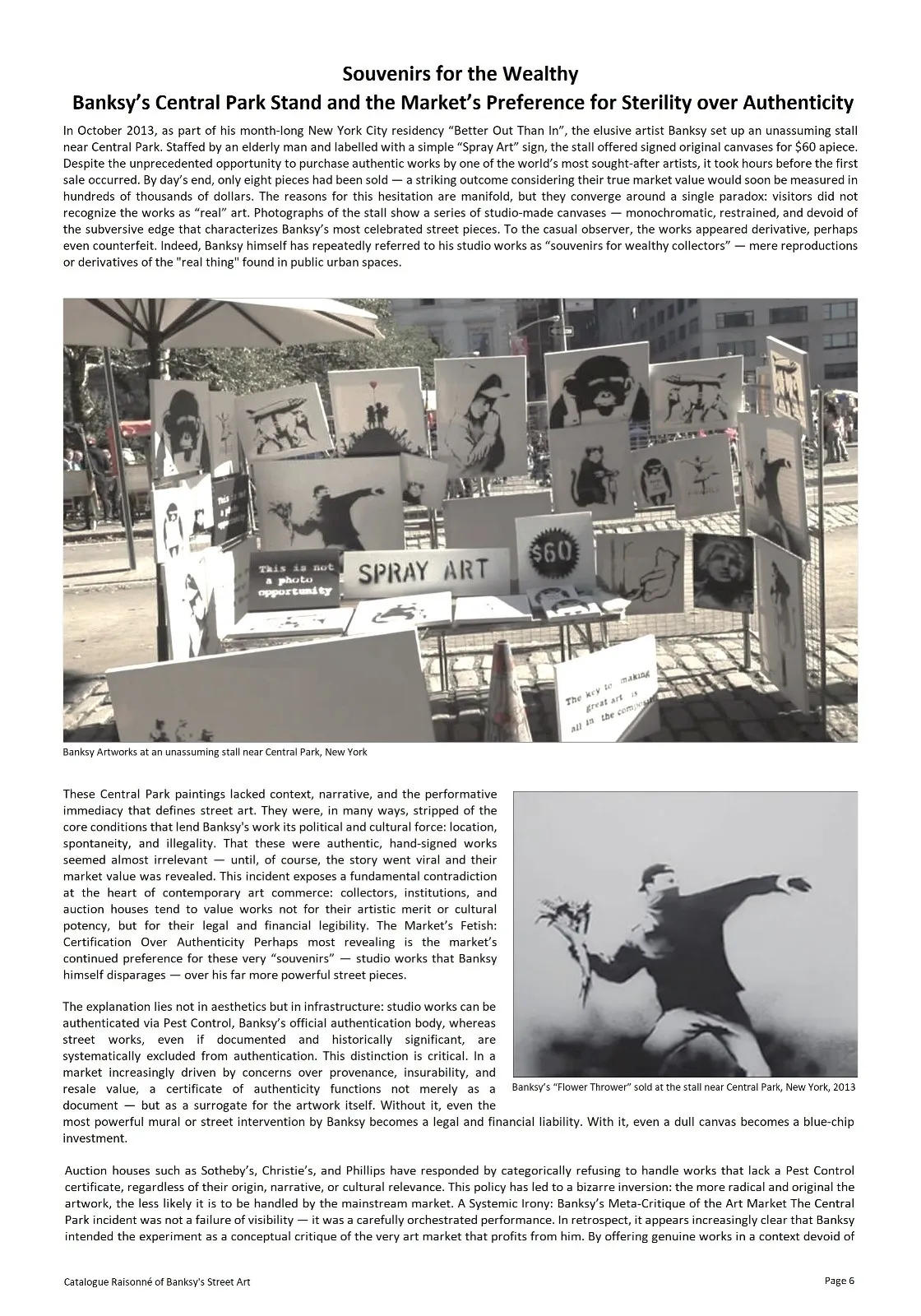 As the catalog raisonné stands as a critical and exhaustive record of Banksy’s street works, it also plays a key role in the preservation of his artistic legacy. While the fate of many of Banksy’s works is uncertain, the catalog ensures that they will not be forgotten. It guarantees that the message embedded in these works, which has resonated with millions of people worldwide, will continue to be studied, admired, and debated.